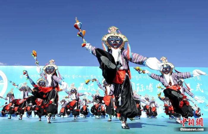 2015年,第二屆西藏旅游文化國際博覽會在拉薩開幕。圖為開幕式上的藏戲表演。李林 攝