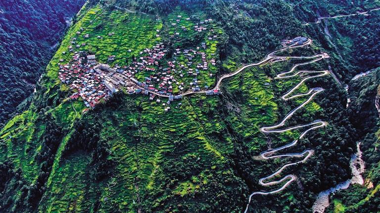 鳥(niǎo)瞰定結(jié)縣陳塘鎮(zhèn)鄉(xiāng)村公路。