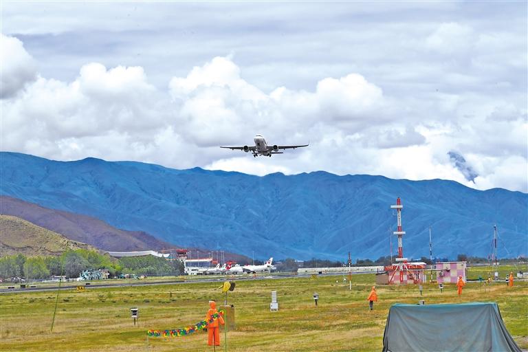 飛機(jī)從拉薩貢嘎機(jī)場(chǎng)起飛。