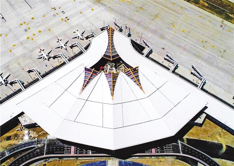 拉薩貢嘎機(jī)場(chǎng)T3航站樓一角。