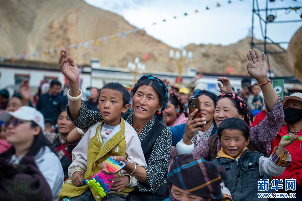 7月23日,在西藏定日2023珠峰音樂美食節(jié)現(xiàn)場(chǎng),民間藝術(shù)團(tuán)表演國(guó)家級(jí)非物質(zhì)文化遺產(chǎn)定日洛諧。新華網(wǎng)發(fā) 李騰 攝