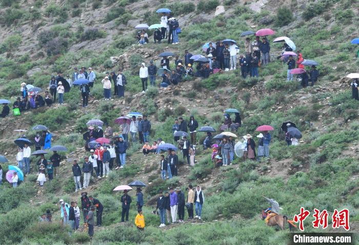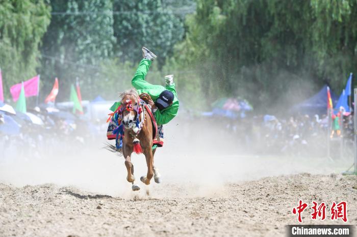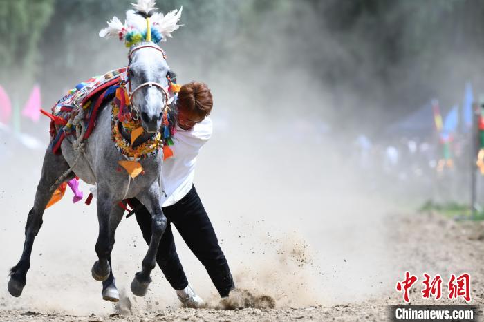 7月24日,在西藏自治區(qū)拉薩市曲水縣曲水鎮(zhèn)茶巴朗村村民身著節(jié)日盛裝進行賽馬和馬術表演歡度“望果節(jié)”?!巴?jié)”已有1500多年的歷史,是國家級非物質文化遺產,流行于西藏拉薩、日喀則、山南等地。