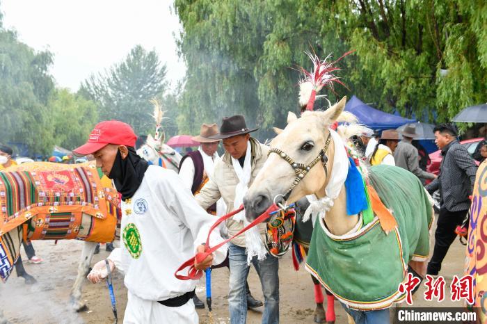 圖為“望果節(jié)”茶巴朗村村民準備賽馬。貢嘎來松 攝