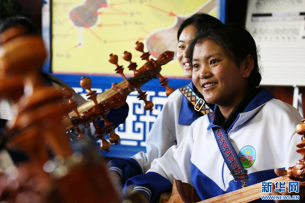 山南市第二高級中學(xué)學(xué)生正在準(zhǔn)備演奏扎木念(7月17日 攝)。新華社記者 聶毅 攝