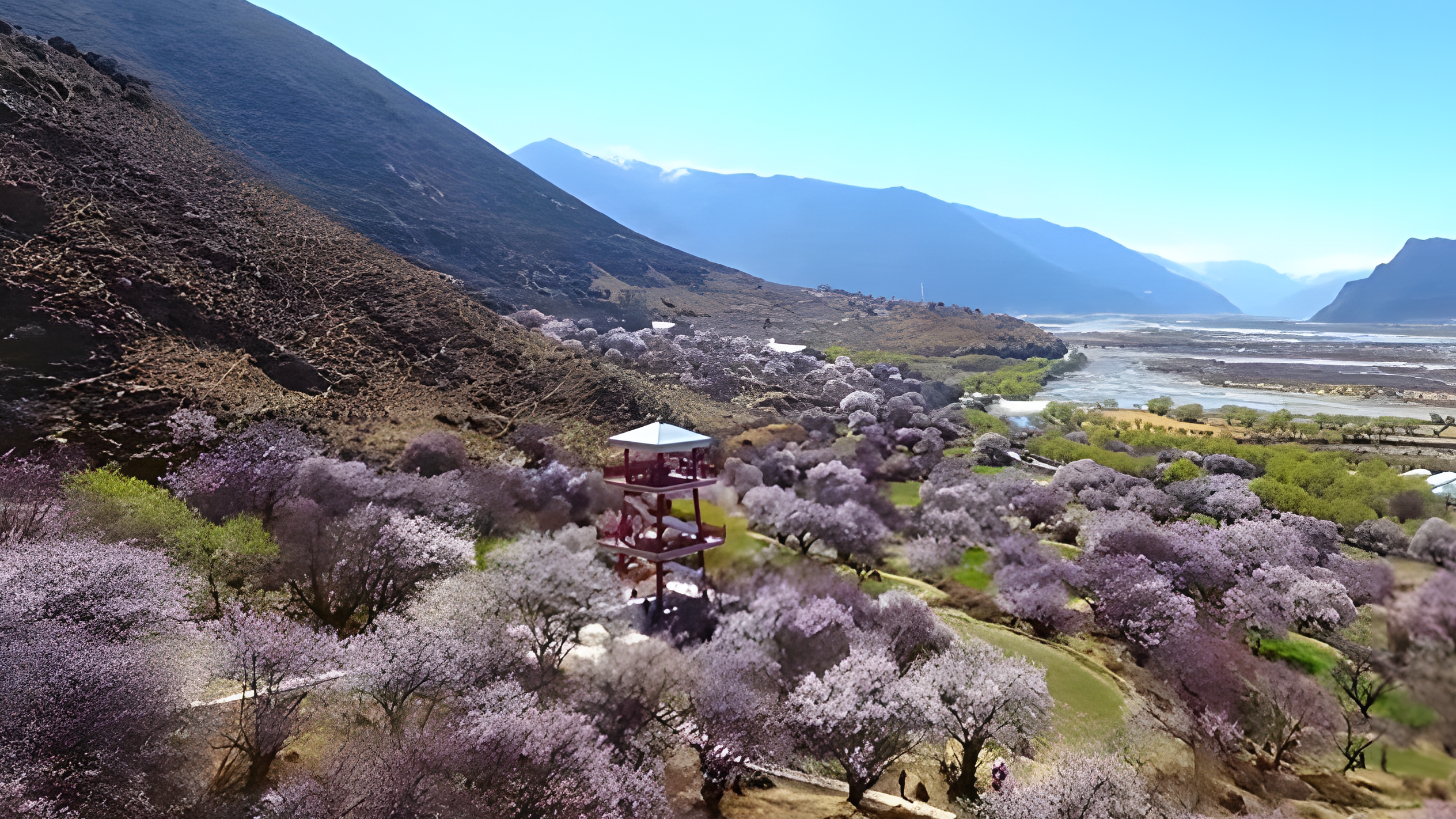 每年春天,這里有1200多株百年以上野生桃樹競相綻放,花香滿園。嘎拉村因此被譽為“桃花第一村”,吸引了全國各地的游客前來一睹“雪映桃花源”的美景。2023年上半年,嘎拉村通過舉辦桃花文化旅游節(jié)獲得341萬元收入。