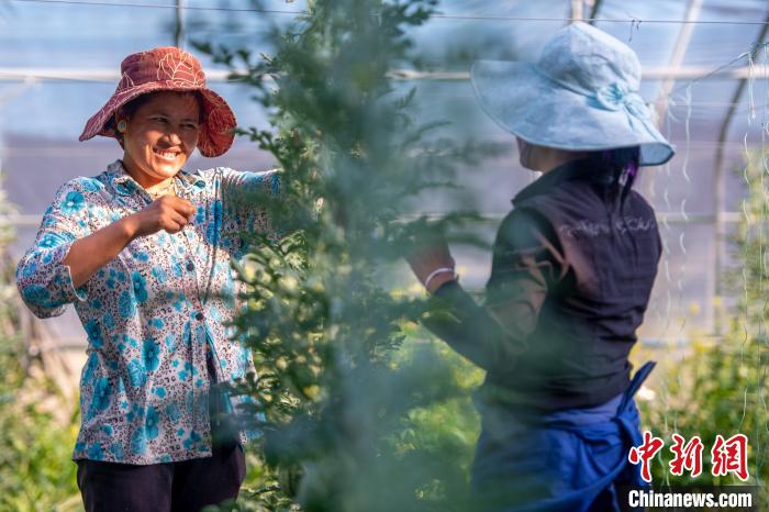 資料圖為西藏白朗縣農(nóng)牧民在大棚內(nèi)打理西瓜苗。江飛波 攝