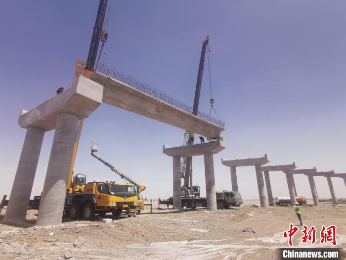 據(jù)介紹,跨青藏鐵路轉(zhuǎn)體橋梁設(shè)計(jì)長度687米,分主橋和引橋兩部分,引橋共設(shè)計(jì)箱梁116片。預(yù)制箱梁架設(shè)屬于高風(fēng)險施工,本次架設(shè)的首片箱梁設(shè)計(jì)長度20米,重量55噸,采用兩臺大型汽車吊協(xié)同作業(yè)完成架設(shè)。