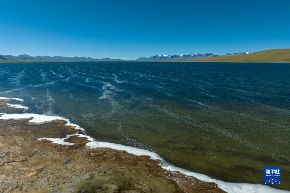 飛鳥從打加錯湖面掠過(無人機(jī)照片,8月30日攝)。新華社發(fā)(旦增努布 攝)
