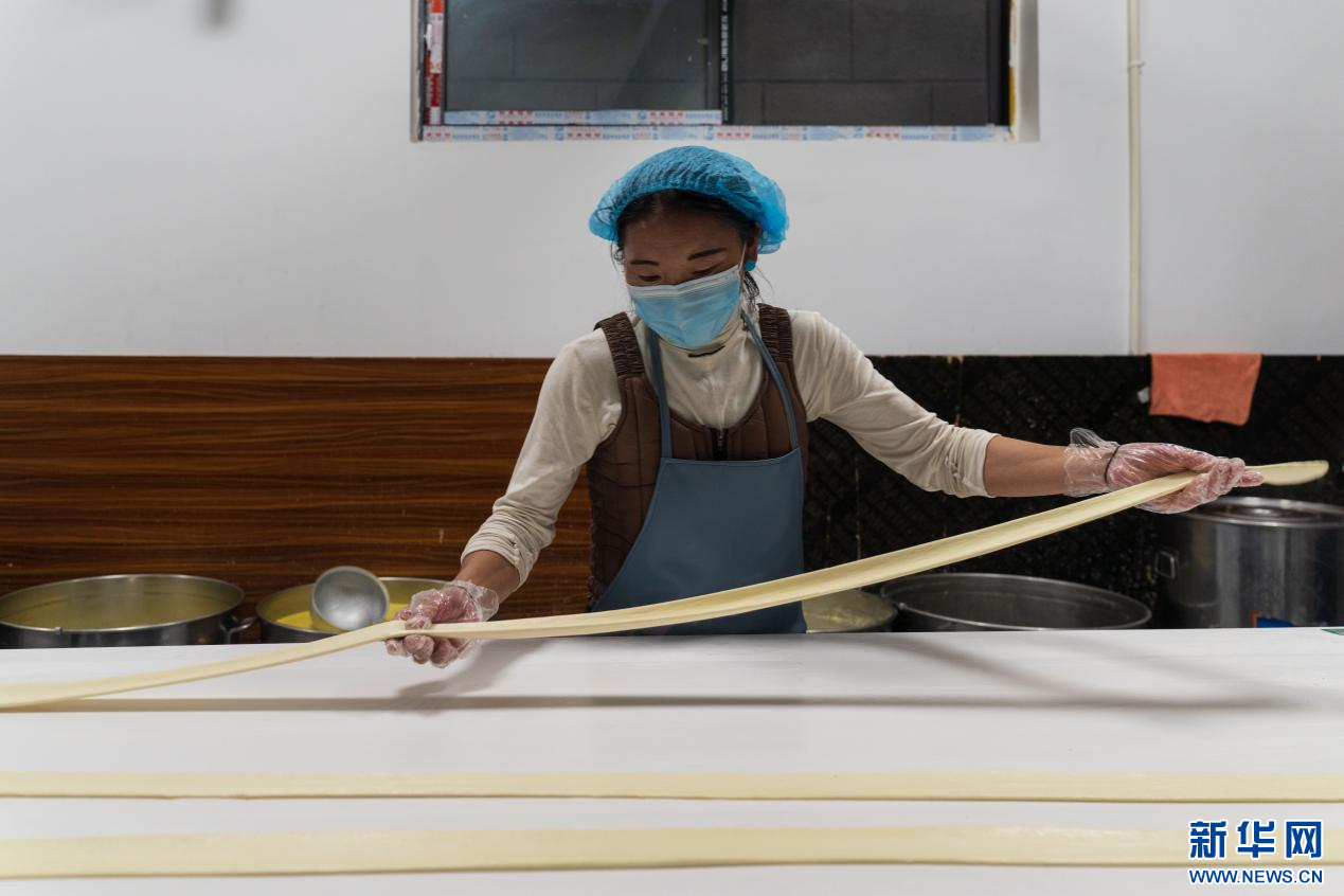 圖為工作人員在制作傳統(tǒng)食品(8月25日攝)。 新華網(wǎng)發(fā) 蘇思源 攝