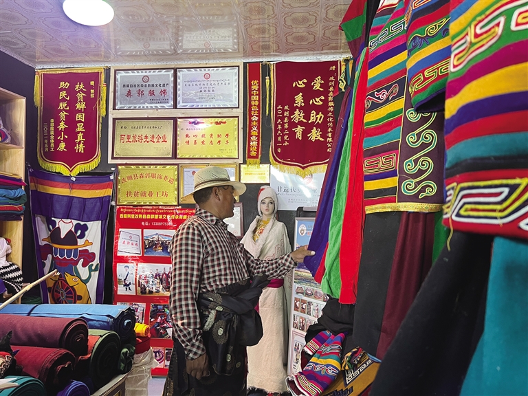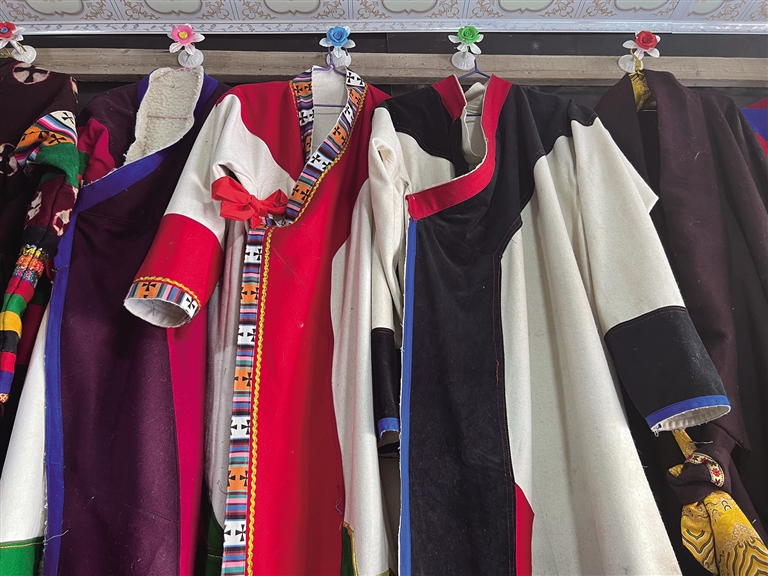 努拉今年66歲,自他曾祖父起,家人就開始從事“森郭服飾”制作,并將這項(xiàng)非遺技藝一代一代傳承了下來。努拉告訴記者:“從父親那一輩開始,由于外來服飾的流入,藏民族傳統(tǒng)服飾的發(fā)展就不如從前了,這對(duì)‘森郭服飾’的傳承也有很大的影響。”