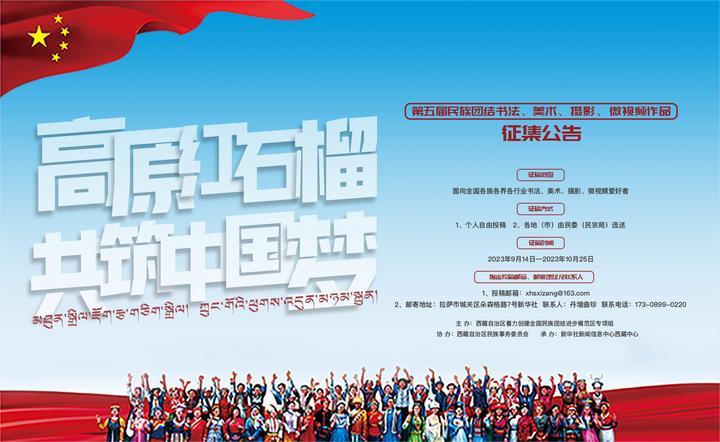 為深入學(xué)習(xí)貫徹習(xí)近平總書記關(guān)于加強(qiáng)和改進(jìn)民族工作的重要思想,緊扣鑄牢中華民族共同體意識(shí)主線,持續(xù)深化著力創(chuàng)建全國民族團(tuán)結(jié)進(jìn)步模范區(qū),不斷促進(jìn)各民族交往交流交融,即日起,西藏自治區(qū)著力創(chuàng)建全國民族團(tuán)結(jié)進(jìn)步模范區(qū)專項(xiàng)組辦公室決定在全國范圍開展“高原紅石榴 共筑中國夢(mèng)”為主題的第五屆民族團(tuán)結(jié)書法、美術(shù)、攝影、微視頻作品征集活動(dòng)。現(xiàn)將有關(guān)事宜公告如下。