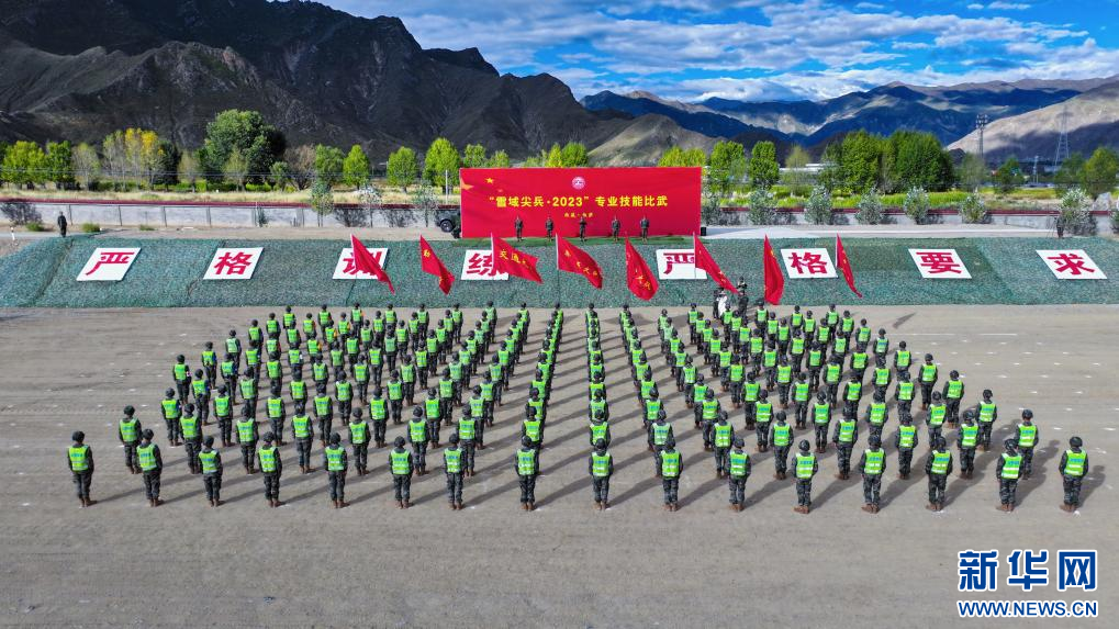 9月25日,“雪域尖兵”專業(yè)技能比武開幕式現(xiàn)場(無人機(jī)照片)。新華網(wǎng)發(fā) 陸文凱 攝