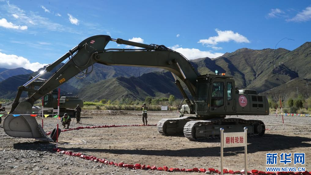 圖為比武隊員操作挖掘機(jī)翻轉(zhuǎn)輪胎(9月25日攝)。新華網(wǎng)發(fā) 程思楊 攝