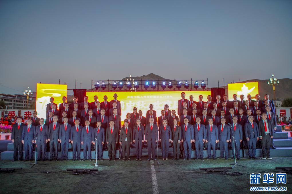 晚會(huì)中,安徽省第八批援藏工作隊(duì)全體成員合唱歌曲《我和我的祖國(guó)》。