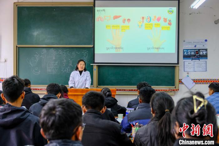 10月12日,中新社記者走進(jìn)西藏藏醫(yī)藥大學(xué)教室,一位老師正向40多位學(xué)生用藏語講授藏醫(yī)藥典籍《四部醫(yī)典》中的脈診,不少同學(xué)的筆記本上,用藏文密密麻麻記滿了要點。