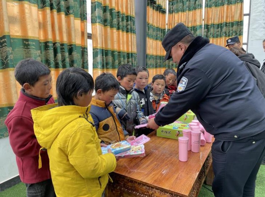 剛來(lái)這里時(shí),尼瑪加參還是一名鄉(xiāng)村干事。后來(lái)在和民警接觸過(guò)程中,他暗下決心要考警校?!皼]想到考上了,圓夢(mèng)了。”為了做好工作,他走家串戶,事無(wú)巨細(xì)地了解,并不善言辭的他操心起群眾的事兒來(lái)變得非?!皢隆??!罢l(shuí)家有啥事兒他門兒清,比自己家還了解?!蓖聜冋f(shuō)。