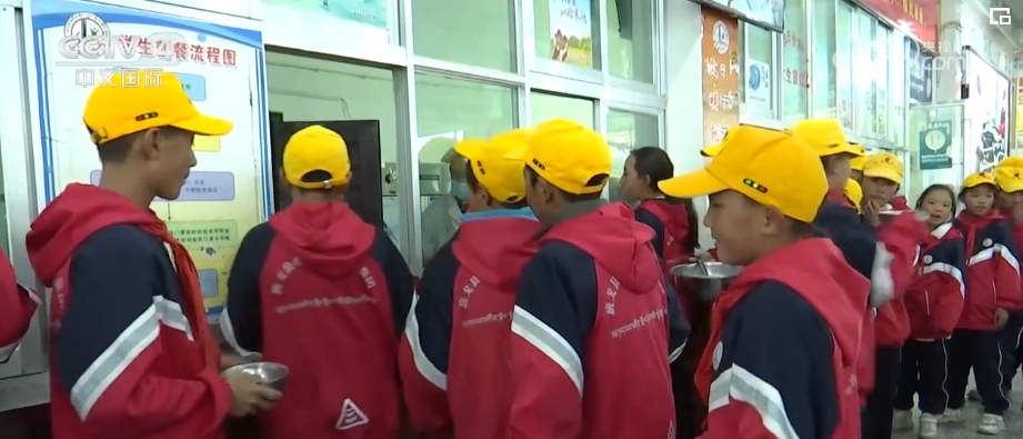 學(xué)校的學(xué)生絕大部分來(lái)自牧區(qū),寄宿制能夠保證更好的教學(xué)質(zhì)量,但并不強(qiáng)制。晚上下課后,離學(xué)校近的學(xué)生由家長(zhǎng)接走,格桑堅(jiān)才則和小伙伴去食堂吃晚飯。學(xué)校還配備生活老師,照顧學(xué)生的日常起居、提供日用品。這些費(fèi)用都由中國(guó)從1985年開(kāi)始,對(duì)西藏自治區(qū)實(shí)施的教育“三包”政策負(fù)擔(dān)。包吃、包住、包學(xué)習(xí)費(fèi)用,學(xué)生家庭不用出一分錢(qián)。2023年這一政策的補(bǔ)助金額又再次提高,達(dá)到年生均4000—5000元。這所學(xué)校的升學(xué)率能達(dá)到100%。
