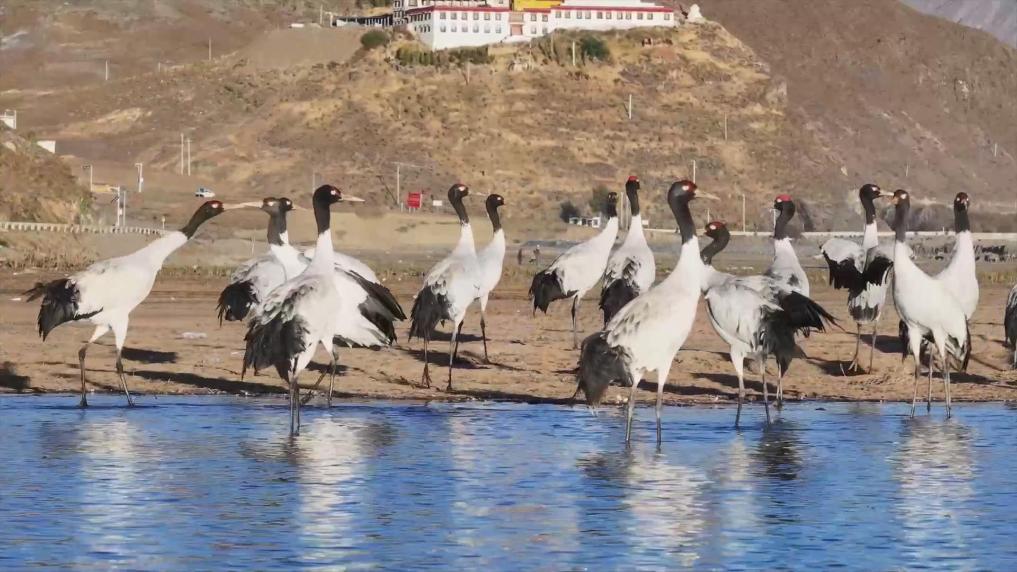 10月下旬,西藏自治區(qū)拉薩市林周縣迎來2023年第一批越冬黑頸鶴。越冬黑頸鶴將在林周縣一直待到來年三四月份。