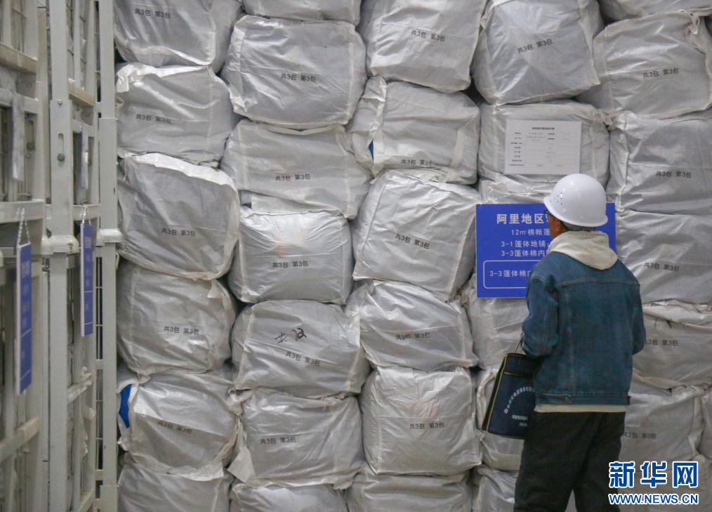 西藏阿里地區(qū)應(yīng)急救災(zāi)物資儲(chǔ)備庫(kù)一角。(11月5日攝)新華社記者 聶毅 攝