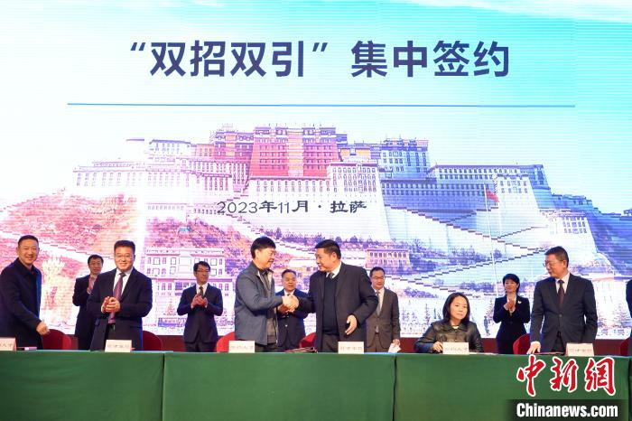 14日,西藏自治區(qū)在拉薩舉行“雙招雙引”(援藏招商引資、招才引智)集中簽約儀式。簽約儀式上,共簽約援藏招商引資項目20個,協(xié)議資金103.08億元(人民幣,下同),涉及清潔能源、生物科技、特色農(nóng)牧、綠色工業(yè)、現(xiàn)代服務(wù)等領(lǐng)域。21名引進專家人才代表參加現(xiàn)場簽約。