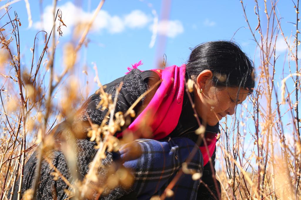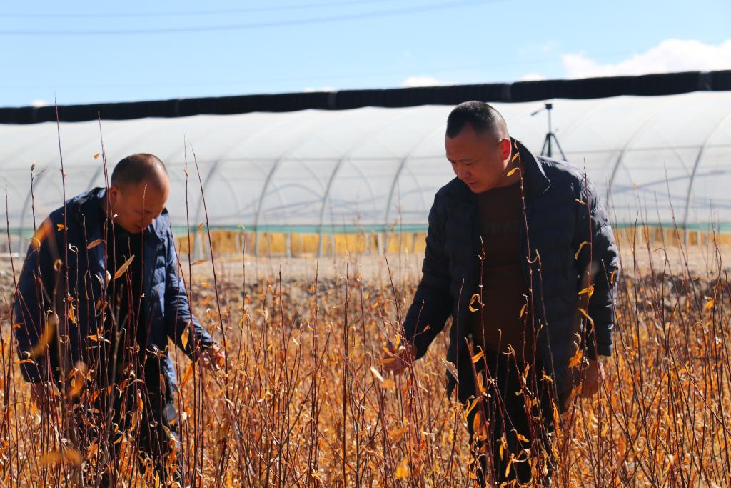 次仁桑卓正在苗木基地勞作(11月10日攝)。新華社記者 曹檳 攝