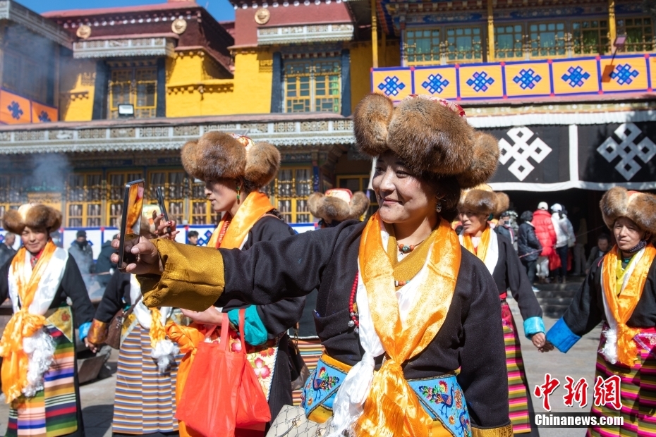 11月15日,西藏拉薩,拉薩婦女在扎基寺跳起傳統(tǒng)舞蹈,迎“仙女節(jié)”。“仙女節(jié)”即吉祥天母節(jié),藏語(yǔ)稱“白來(lái)日追”。相傳藏傳佛教最高護(hù)法神之一班丹拉姆的女兒白拉姆,不顧母親的反對(duì)與赤尊贊私定終身,班丹拉姆一怒之下將赤尊贊趕到拉薩河南岸,規(guī)定二人僅每年的藏歷十月十五日相見。中新社記者 貢嘎來(lái)松 攝