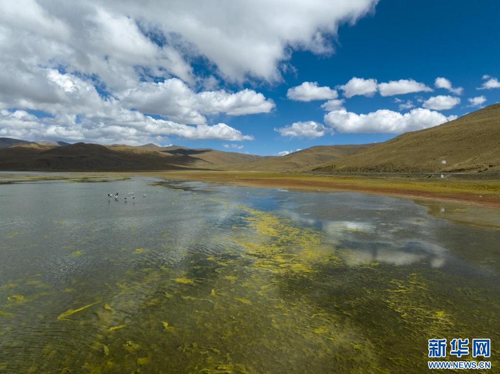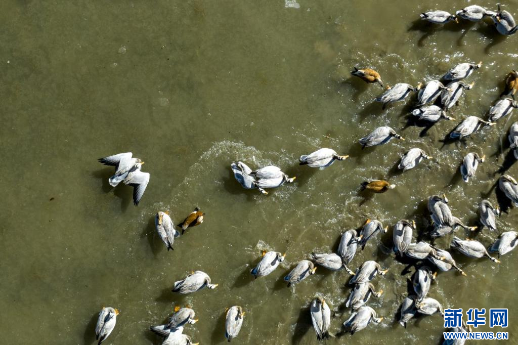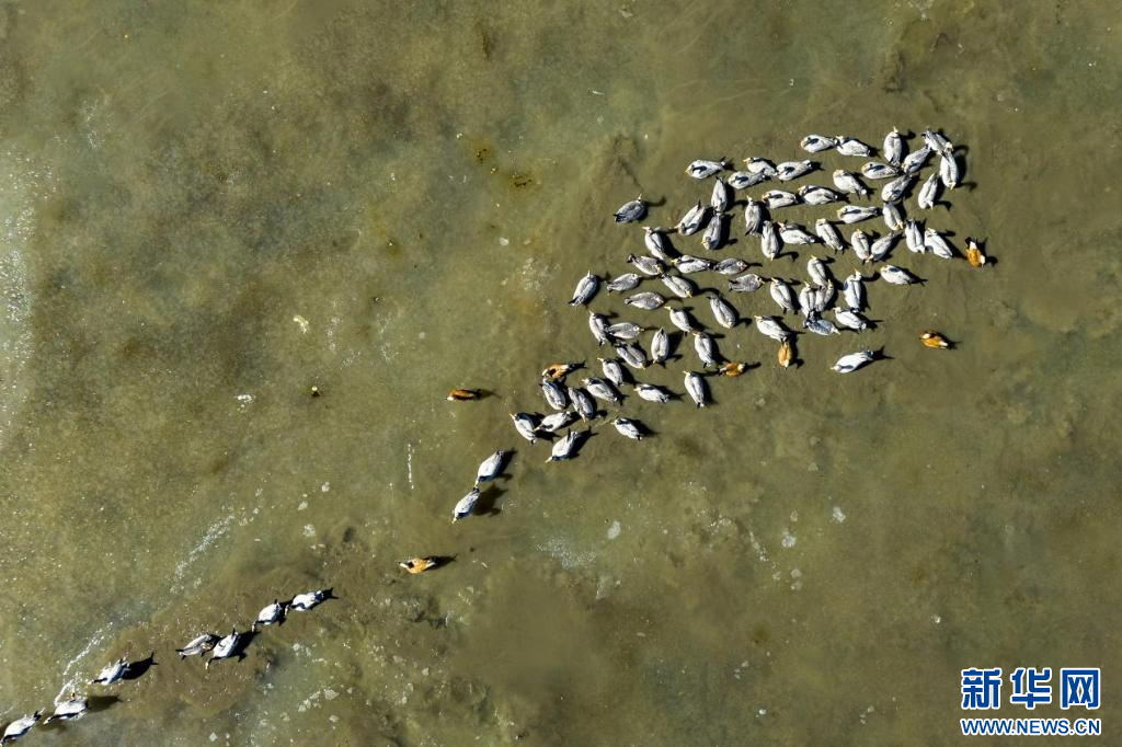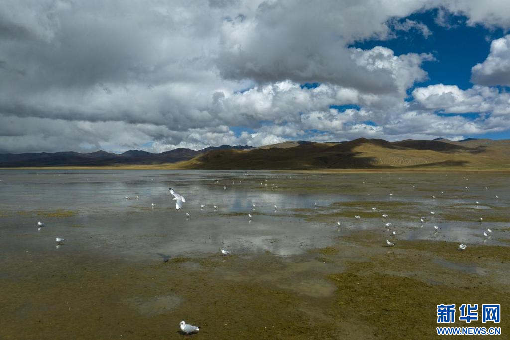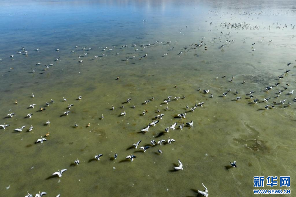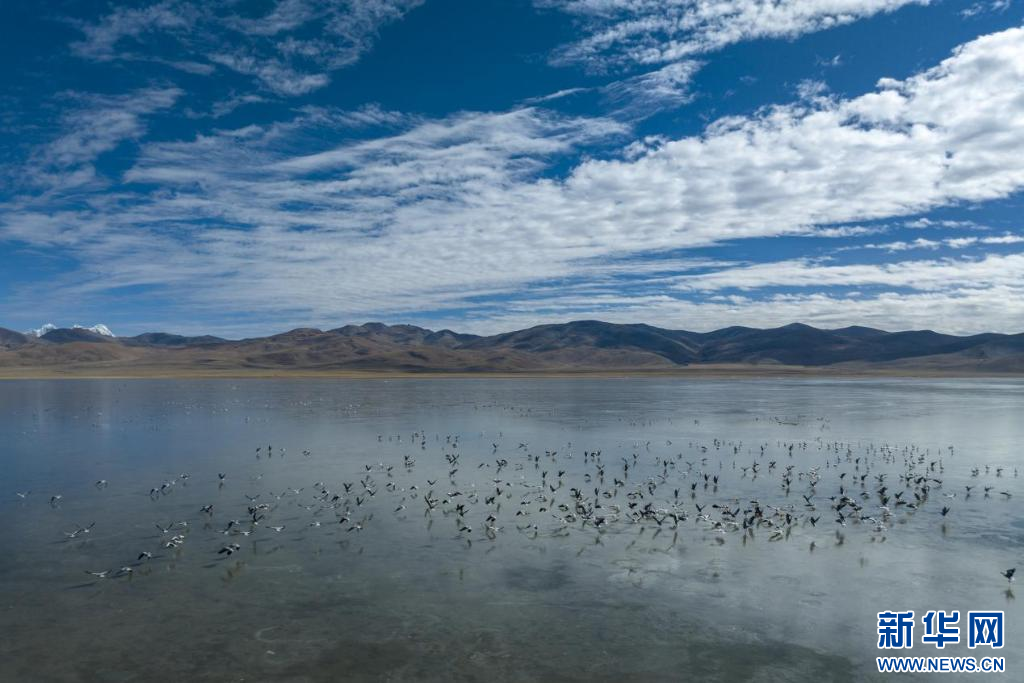 11月17日,在哲古湖拍攝的鳥群(無人機照片)。新華網 旦增努布 攝