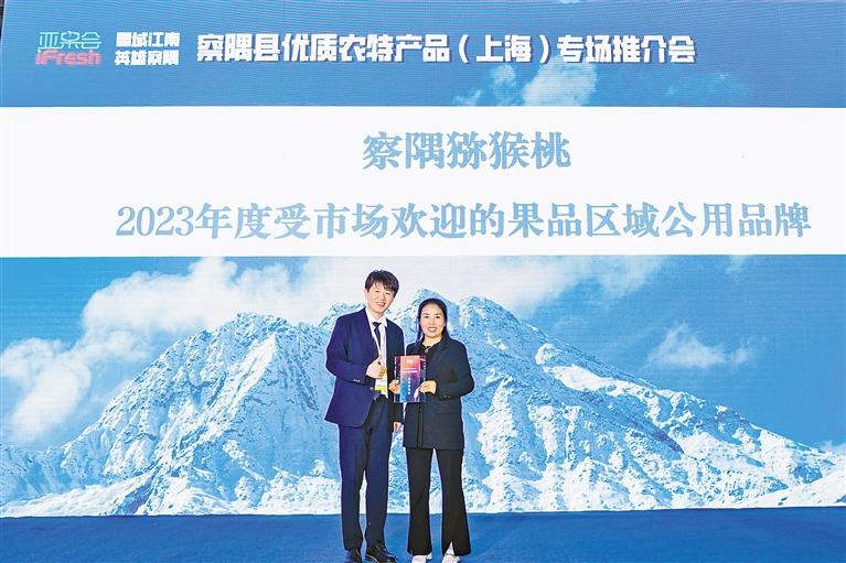 察隅獼猴桃獲得第十六屆iFresh亞洲果蔬產(chǎn)業(yè)博覽會(huì)“2023年度受市場(chǎng)歡迎的果品區(qū)域公用品牌”的榮譽(yù)。 圖片由本報(bào)記者 謝筱純 王珊 攝