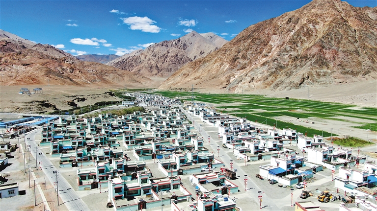 在黨和國家的關(guān)懷下,如今的日土縣多瑪鄉(xiāng)烏江村成為了邊境小康村,全村群眾通過發(fā)展合作社、苗圃等產(chǎn)業(yè),年人均收入達(dá)到了2萬余元,過上了富足祥和的生活。圖為鳥瞰烏江村(7月23日攝,無人機照片)。記者 洛桑旦增 攝