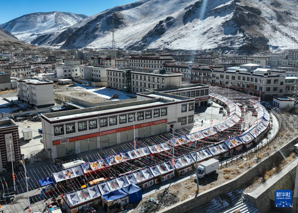12月14日,西藏日喀則市康馬縣冬季物資文化交流會現(xiàn)場航拍(無人機(jī)照片)。新華社記者晉美多吉 攝