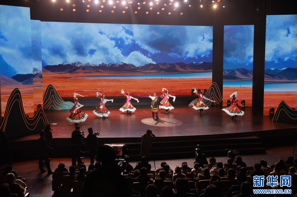 圖為12月21日開(kāi)幕式晚會(huì)歌曲《青稞美酒獻(xiàn)給你》演出現(xiàn)場(chǎng)。新華網(wǎng)發(fā) 李騰 攝