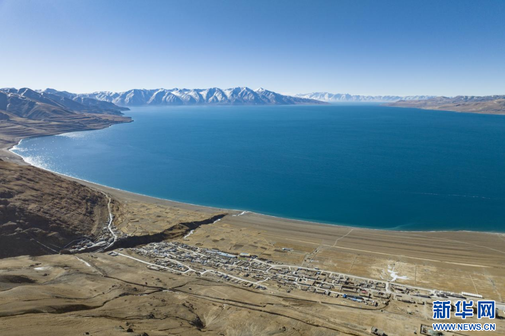 12月20日拍攝的當惹雍錯和村莊(無人機照片)。新華網 旦增努布 攝