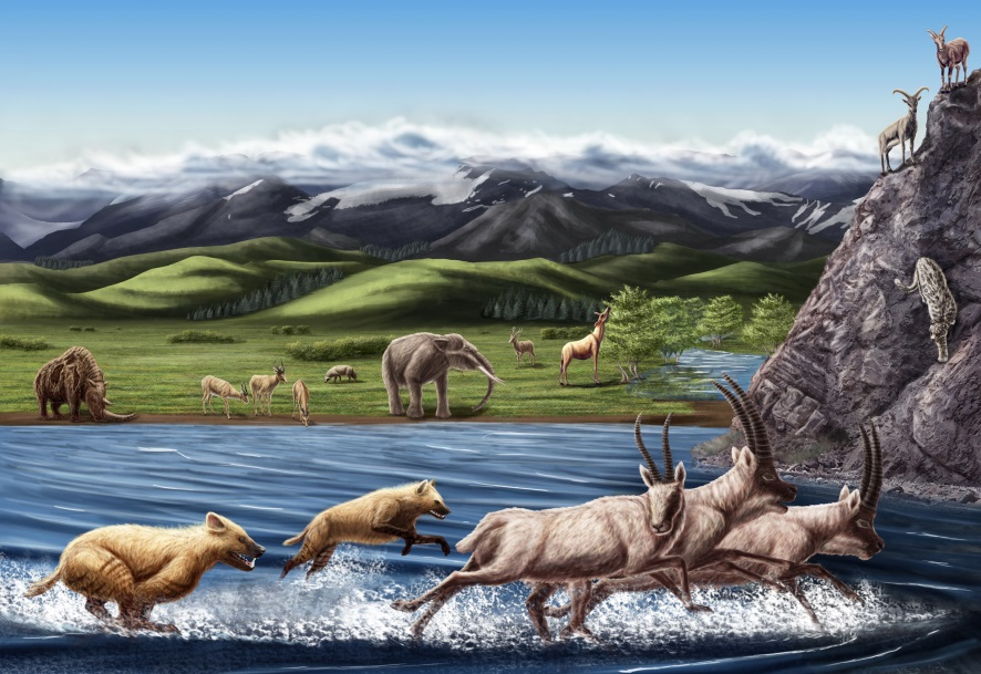 西藏札達盆地上新世哺乳動物群生態(tài)復(fù)原圖。(中國科學(xué)院古脊椎所供圖)