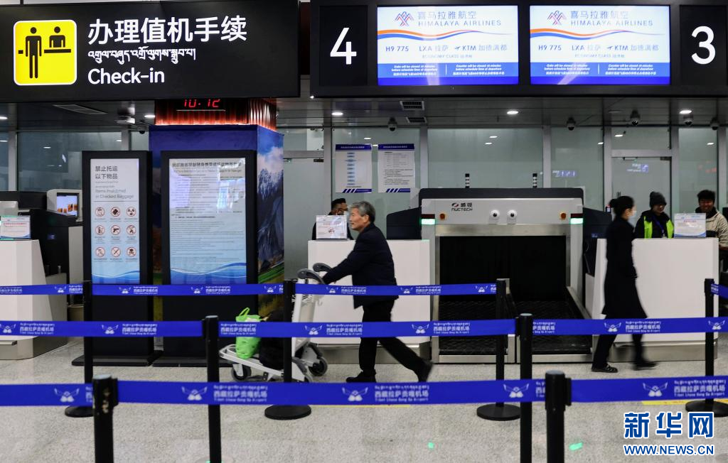 出境旅客正在拉薩貢嘎國際機(jī)場(chǎng)辦理出入境相關(guān)手續(xù)。新華社記者姜帆 攝