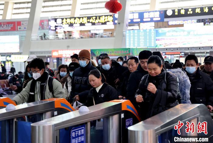 圖為1月26日,青海省西寧火車(chē)站,旅客正在檢票進(jìn)站。祁增蓓 攝