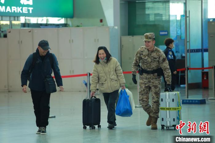 圖為1月26日,西寧火車(chē)站,武警官兵主動(dòng)幫助旅客。郭紫陽(yáng) 攝