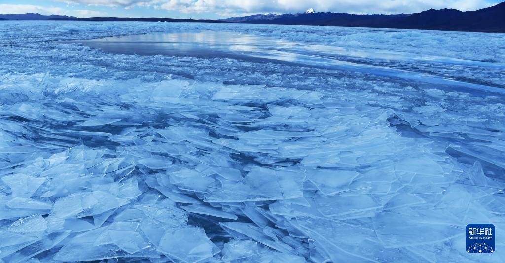 瑪旁雍錯(cuò)湖面上的冰像碎玻璃一樣透亮(1月29日攝)。新華社記者 關(guān)明輝 攝
