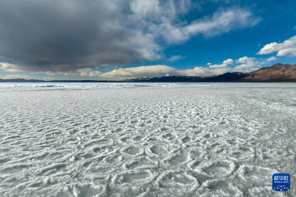 瑪旁雍錯(cuò)湖面上的冰堆積在一起,形似波浪(1月29日攝)。新華社記者 關(guān)明輝 攝