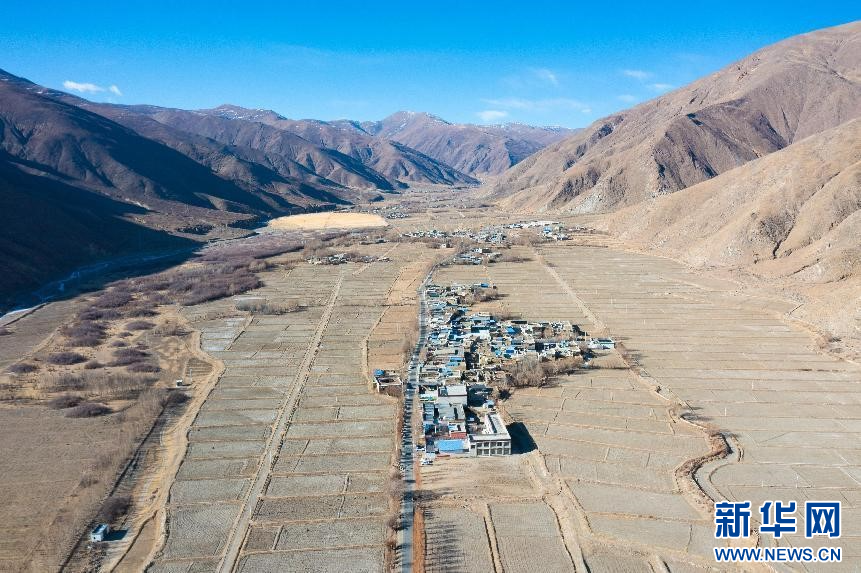 圖為鳥瞰昌嘎村(無人機照片,2月2日攝)。新華網(wǎng)發(fā) 李騰 攝