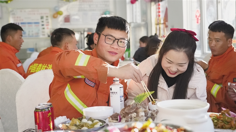 在大隊(duì)里,孫再藏與妻子一起包餃子、貼春聯(lián)、看春晚,和消防員們共同歡度佳節(jié)。除夕夜,孫再藏和妻子手挽著手,在操場(chǎng)上漫步。妻子抬頭看著丈夫,眼中充滿了驕傲和溫柔。她說(shuō):“你們過(guò)年還挺熱鬧的,好好站崗值班,家里不用擔(dān)心,有我呢?!?/p>