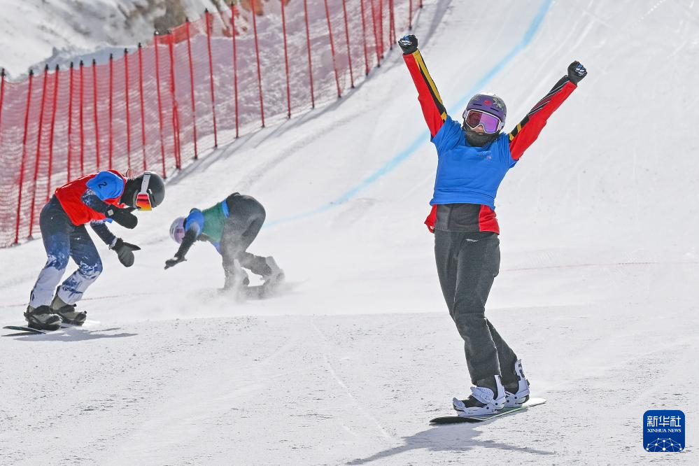 2月19日,在第十四屆全國(guó)冬季運(yùn)動(dòng)會(huì)單板滑雪青年組女子障礙追逐比賽中,西藏隊(duì)選手擁青拉姆、湖北隊(duì)選手楊禮妍和遼寧隊(duì)選手馮賀分獲前三名。新華社記者 李志鵬 攝