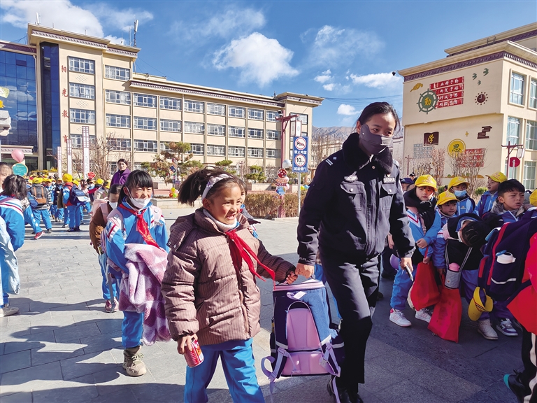 站在學(xué)校門口,等待孩子的家長央金感觸頗深,她告訴記者,每次開學(xué)前、開學(xué)時(shí)、開學(xué)后,都能看到民警們忙碌的身影。為學(xué)校家長提供幫助,為學(xué)生消除安全隱患,營造了安全、和諧、文明的校園環(huán)境,十分感謝他們。“今天報(bào)到啦,我們看到警察叔叔和阿姨就覺得很安心、很開心?!睂?shí)驗(yàn)小學(xué)3年級10班學(xué)生白瑪娜薩說。