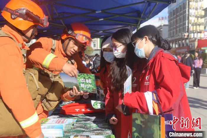 圖為消防員正在開展防火知識(shí)普及。西繞拉翁 攝