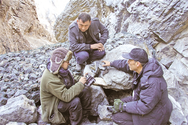 這次調(diào)查累計(jì)野外工作71天,布設(shè)紅外相機(jī)36臺(tái),16個(gè)地點(diǎn)拍攝到雪豹照片32張,取得豐碩成果。