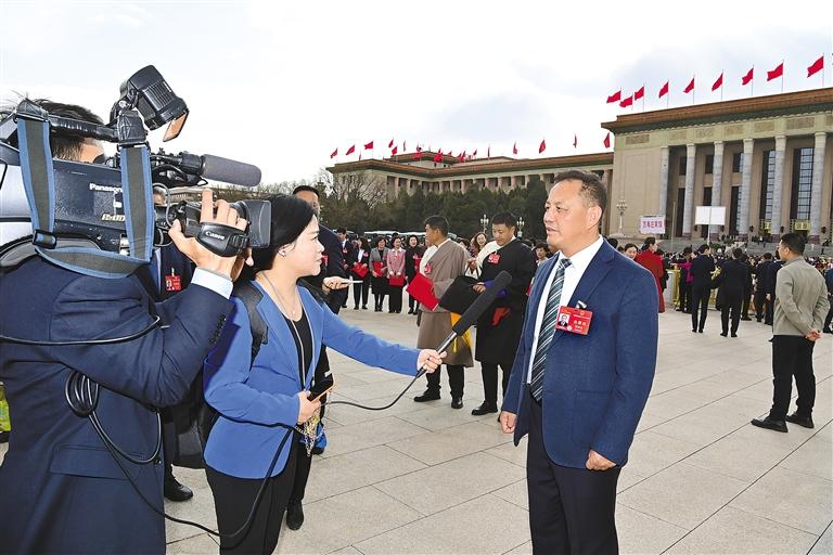 圖為西藏全國人大代表羅慶伍接受媒體采訪。