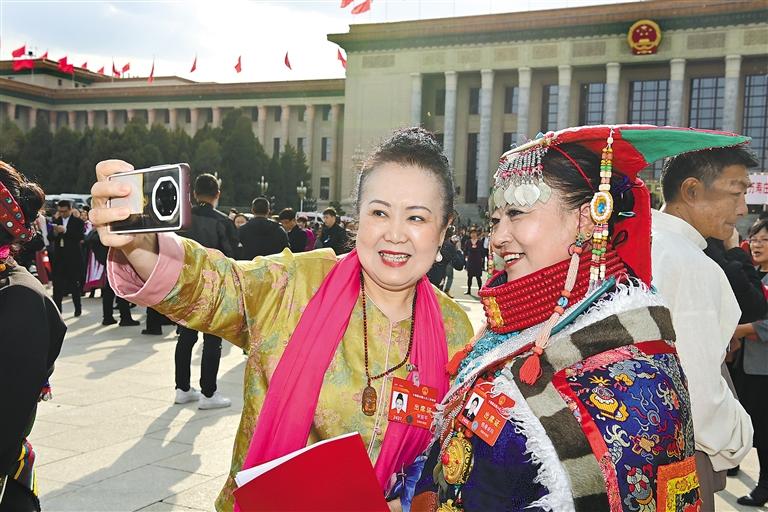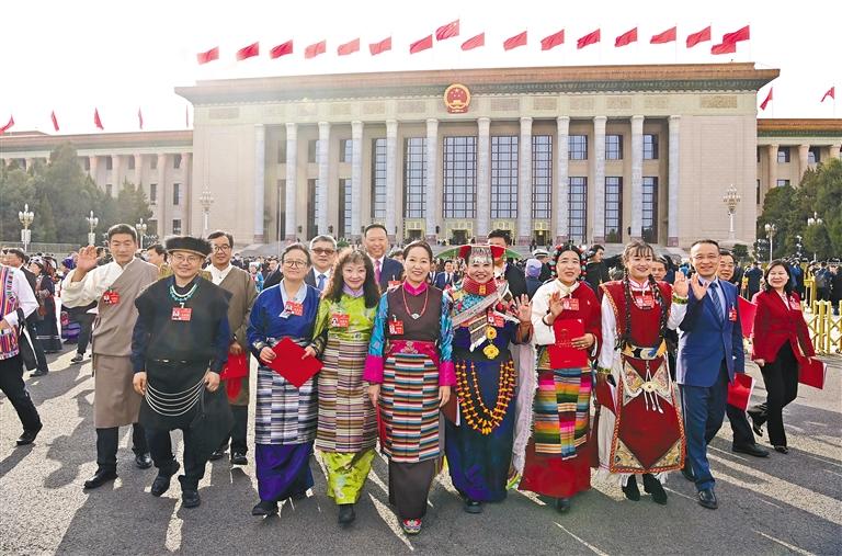 圖為閉幕會結(jié)束后,西藏全國人大代表信心滿懷走出會場。旦增西旦 攝