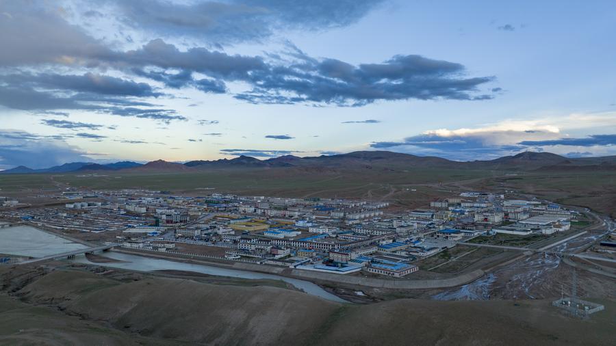 這是尼瑪縣城鳥(niǎo)瞰(2023年8月5日攝,無(wú)人機(jī)照片)。新華社發(fā)