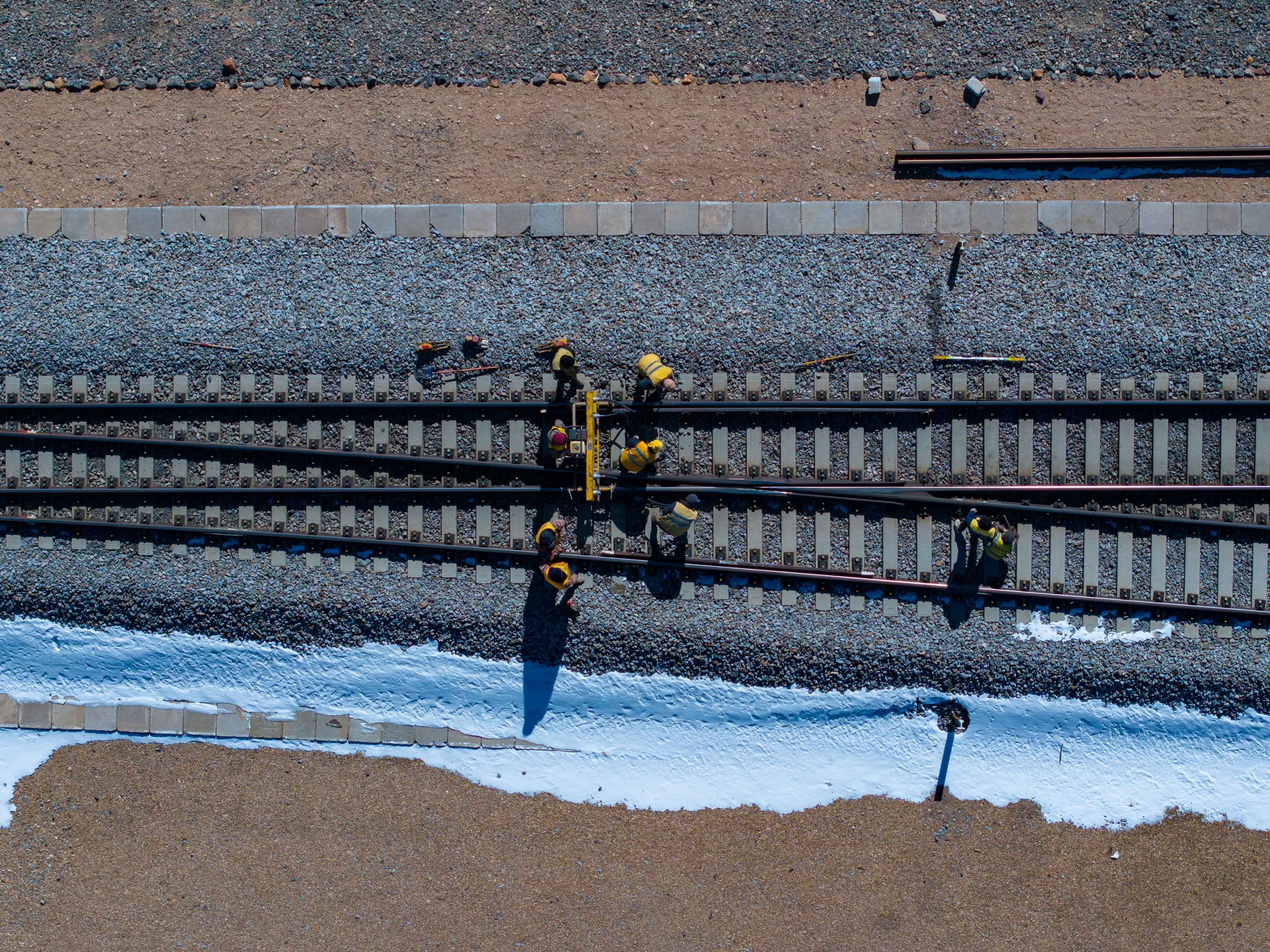 他帶著工人們迅速出動,抵達現(xiàn)場時已經(jīng)是過了12點。這時天窗鄰近,他們迅速做好準備,第一時間沖到鐵軌上施工。黑夜里,幾個微小的燈光在茫茫荒野上晃動,隱約區(qū)分出鐵路的軌跡。