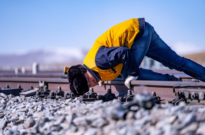 在唐古拉山,天窗無論早晚——從滿天星斗到晨光熹微,只要是需要施工的時候,馬祎俊都會帶著工人們奮戰(zhàn)在鐵軌之上。“為了讓鐵路更加平穩(wěn),我們多辛苦都值得?!彼f。