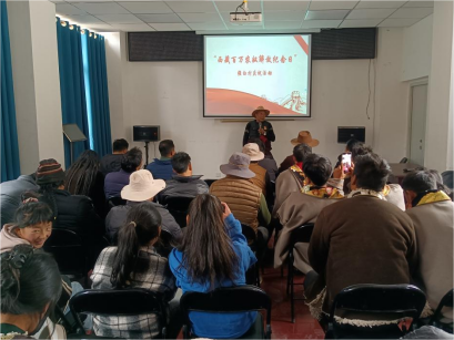 活動(dòng)從上午11時(shí)開始,村民們聚集在村委會(huì)的旗桿下,唱著雄壯的義勇軍進(jìn)行曲,冉冉升起鮮艷的五星紅旗。隨后駐村工作隊(duì)為大家播放了民主改革紀(jì)錄片《跨越》《朗生互助組》。播放結(jié)束后,村里的3名老黨員先后以親身經(jīng)歷講述新舊西藏的深刻變化,教育大家一定要珍惜今天的幸福生活,聽黨話、感黨恩、跟黨走。嘎瑪頓旦今年74歲,是一名老黨員,他身著節(jié)日盛裝,佩戴“光榮在黨50年”紀(jì)念章,自信地向群眾講述,“舊西藏,強(qiáng)白村要給政府上很重的稅,有7戶人家每年還上要交牦牛,日子過得甭提有多苦、多難?,F(xiàn)在政府不收一分錢,每年給大家發(fā)那么多的政策補(bǔ)助,路修通了,房子修得漂亮了,吃的穿的都好,我們都是親眼所見的,所以,沒有理由不感謝共產(chǎn)黨。”